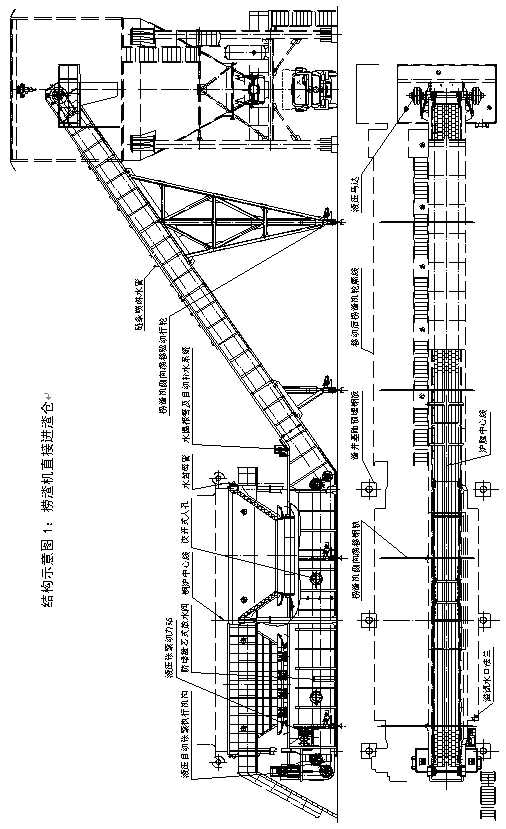 (6)槽体衬层:上仓水平段和倾斜段及下槽体全部采用防破碎、防脱落玄武岩铸石衬,寿命不小于10年。用户要求时,上槽体可采用耐磨型可更换耐磨钢板。  (7)刮板捞渣机横向移出方式:手动和电动自驱。根据捞渣机的不同情况设置多套行轮或带有驱动的行轮,满足捞渣机移出检修的要求。 (8)机尾型式:垂直封闭式,可保持环境的清洁,特别设计的快开尾部检修门,可在不停炉的情况下更换刮板链条。 (9)放水阀型式:防堵盘芯式。此放水阀取代国内外都套 用的闸板式截止阀,克服了灰渣堵塞后无法疏通的弊病,非常实用。 (10)人孔型式:无螺栓紧固快开式。此人孔只需一捅即开,避免了因螺栓锈蚀造成开门困难和操作繁琐之弊。 (11)机仓强度:按抗水爆、强结焦的防溅水设计,寿命不小于30年;当机仓充满灰渣时能正常启动,仓体不变形。 (12)回程刮板清渣:刮板捞渣机刮板卸渣后,在卸料口回链刮板处设有铰接配重清渣刮板组,此刮板可基本清除刮板返程的带渣。 (13)拖动链轮:采用凹齿型式,承载力大,最大的特点是改善链条与拖动链轮的啮合性能,保证链条不爬链、掉链。同时因为凹齿结构对链条因磨损使周节变长的敏感性比凸齿结构低,从而可延长链条的使用寿命。 (14)溢流水澄清:刮板捞渣机溢流水装置设有锯齿形溢流堰和PVC(或不锈钢)平行斜板澄清器,以保证溢流水携带的悬浮浓度不超过300mg/l。在回用水水质要求不高的的情况下,可直接回用;当要求较高情况下,可将捞渣机溢流水泵入高效浓缩机进行进一步提高回用水的水质,为除渣水的循环使用做好准备。 (15)捞渣机有充分机械及电气保护装置:捞渣机具有掉链、断链、卡链、过电流、过载保护装置。当捞渣机出现故障时,以上保护装置均能自动停机并报警。设有捞渣机水温过高报警。 订货须知: 用户需提供锅炉的排渣量,一台锅炉所配捞渣机的数量、关断门下沿标高及尺寸,捞渣机卸料口位置及标高,捞渣机横向移出的型式,采用何种驱动配置、张紧型式、链条是否进口等详细信息。 如果炉下整体供货,请提供锅炉下联箱标高(或锅炉水封插板及挡灰板)及尺寸,锅炉喉口尺寸及捞渣机排渣口位置、标高及后续设备的配置等情况。 刮板捞渣机典型结构示意图: