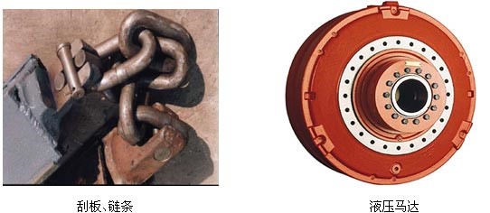 (2)传动链条采用进口奥地利培瓦克公司、德国THIELE公司或德国路德公司高耐磨圆环链条,表面硬度可达HV800,寿命在正常运行条件下可达5年之久,破断载荷500kN。 (3)刮板抗弯、耐磨设计:角钢加腹板及筋板加强,即使在最大出力情况下,亦不会出现刮板变形、断裂的情况;刮板工作边焊淬硬的高锰钢,耐磨损,使用寿命高。