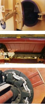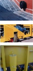 (4)刮板与链条联接型式:刮板、链条采用叉型无螺栓铰链式联接,此型式使拆装调节刮板间距极为方便,没有螺栓联接的防松防锈之弊和钢性联接的有害约束,联接可靠。 (5)链条张紧型式:有三种张紧方式可供选择,对同大型机组配套捞渣机主要是